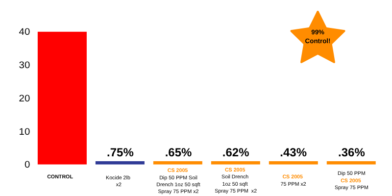 The untreated control plots showed only 40% disease control, while treatments with Magna-Bon CS 2005 achieved over 99% control, setting a higher standard for effective and sustainable onion disease management.